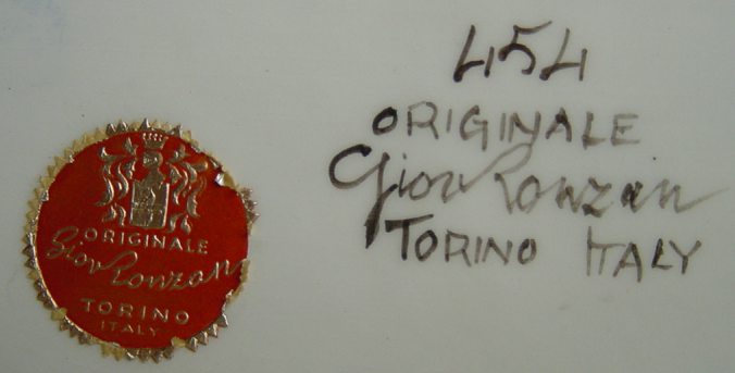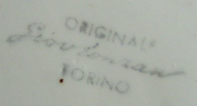 6) Hand painted, under glaze, used in Torino on the 1950/ 1968 (about) used only by Giovanni, after company scission and his back to Torino, alone (the red mark has used for the 1951/55 about)