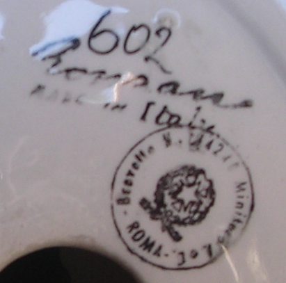 4) Hand painted, under glaze, used in Bassano dal 1942 al 1949, by Giovanni and Giuseppe brothers (with the companion Cecchetto from Nove) (like previous mark but without Bassano)