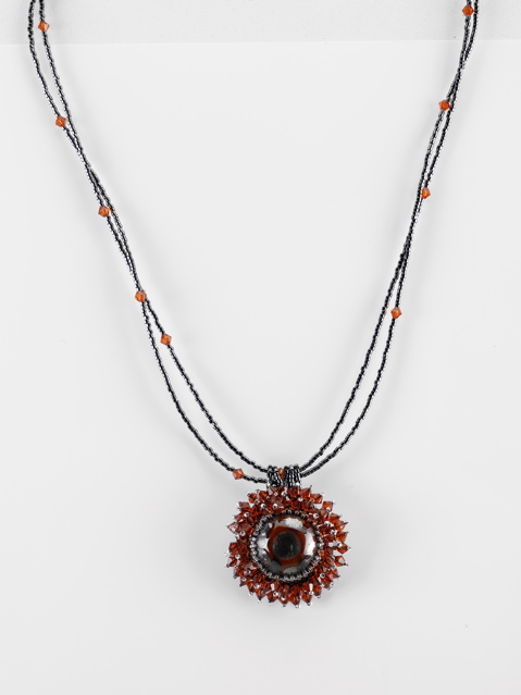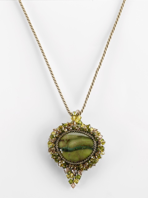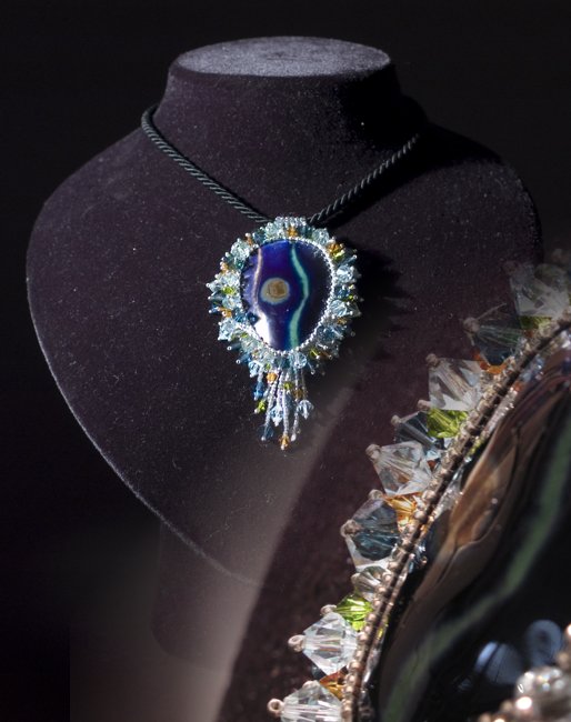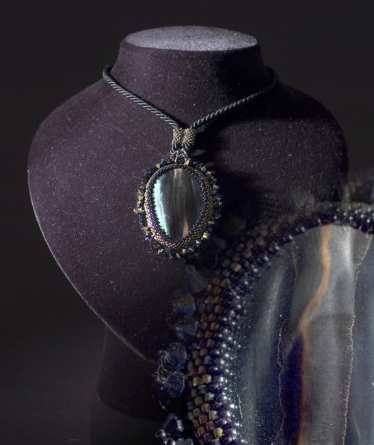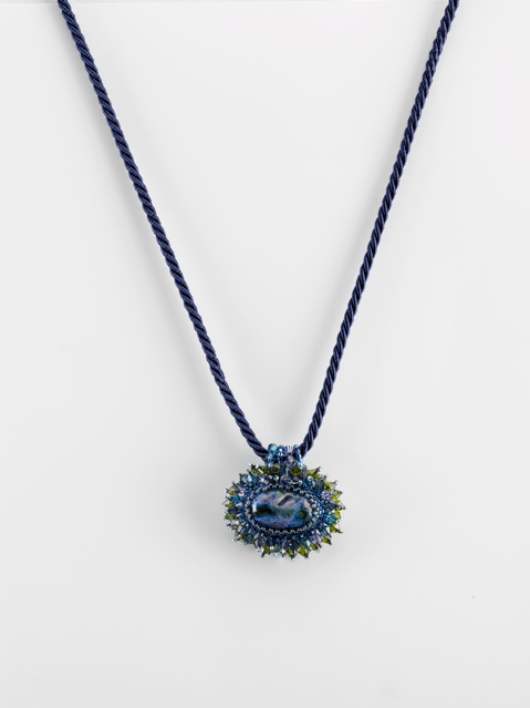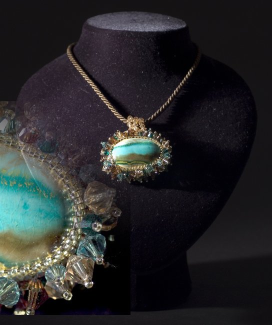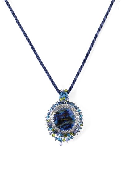 This is the work of the Master Ferruccio De Mori who I call "the poet of colors". Thin strands interwoven colored beads, precious Swarovski with such grace and elegance of a woman adorn the colored cabochon, she is Ada De Mori who so lovingly enshrines the works of his father.