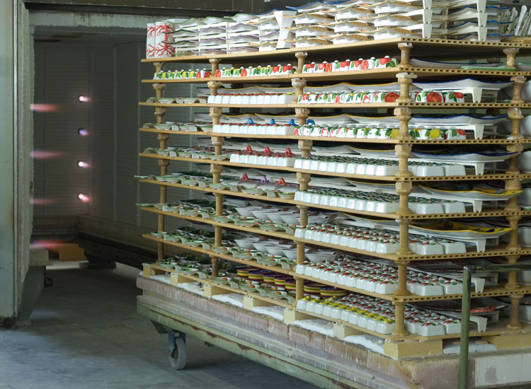 Our company is born in 1985. Kilns we produce are designed to the customers' requirements. They are certificated by the CE mark and tested before the sale. They are handicrafts, they express power and reliability even as the yeas go by. The kilns we produce are designed to the customers' requiments. They are certificated by the CE mark and tested before the sale. They are handicrafts, they express power and reliability even as the years go by. Shaped iron sheet framework; trolleys rolling on vulkolan wheels; the opening of the door is easy and reliable thanks to two handweels with roller bearing; operating temperature of 1250°C for firing porcelain and 1100°C for firing ceramic; cowl for smoke concentration in pressed steel; the firing chamber is lined with mineral ceramic fibre which has high insulating power (1450°C). Firing by means of high velocity burners with revers flame; computer in console ATR 313: automatic arrest if gas isn't regular; gas-stop if there is bad working of burners; theoretical graphics and real vision of firing cicle; automatic storage of events. The electronic firing control is composed by electronic cards that verify each single burner, make the burner start or reactive it, if it stalls. |