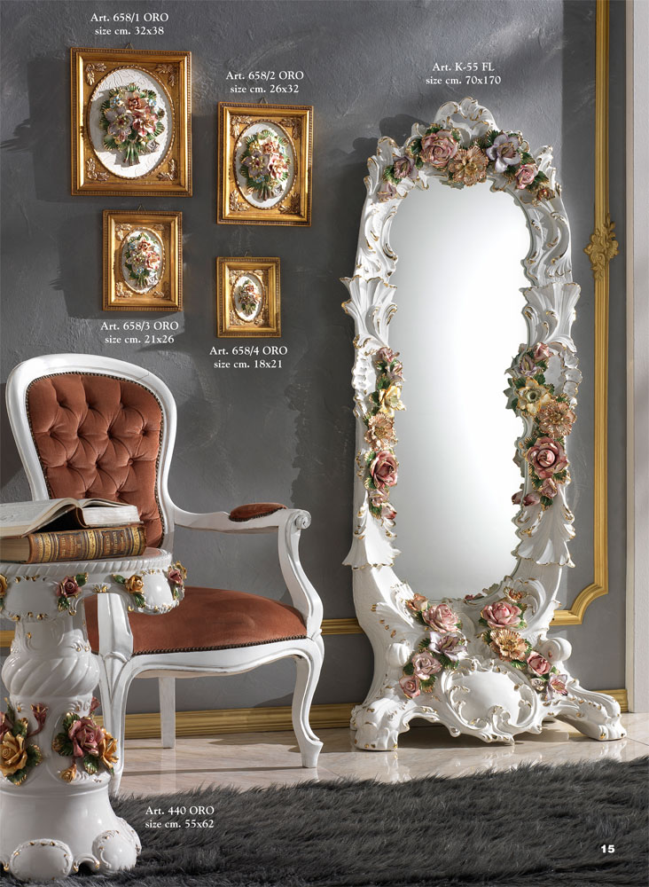 Sonda Ceramics was founded in 1974 by Domenico Sonda. Since then it has been highly estimated for its production of big items in Capodimonte . Their creations are exported to many countries of the world and their continuous research for new shape and decoration makes them a dynamic company that caters to the market needs, but maintains the tradition of Italian ceramic production. Domenico Sonda's four children Luca, Simone, Alessandro and Cristina, joined the company in 1980 and since then they have been giving new ideas to the designs. They have specialized in the creation of flower applications in the typical Capodimonte style. They produce: vases, mirrors, tables, lamps, clocks, toilette accessories, photoframes, fountains, wells and centerpieces, decorated with cristals, gold and platinum.