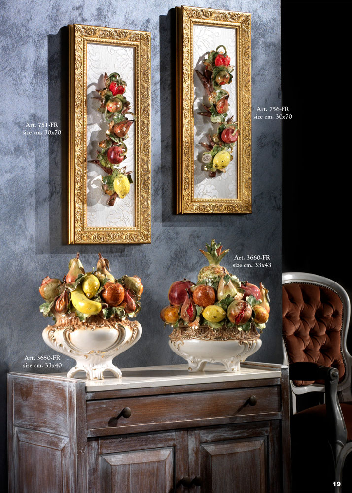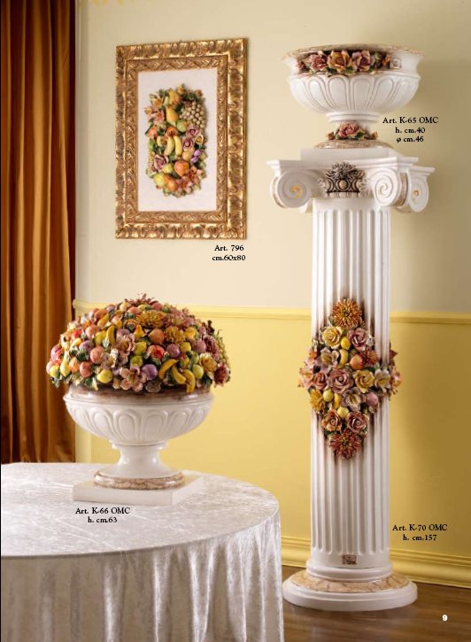 Gift, florist articles, furnishing accessories, lighting - Capodimonte jars, vases, cachepot, tables, columns, piedestals, lamps, mirrors, soup-tureen, ash-trays, photo frames, figures.