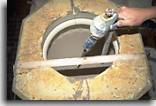 The liquid clay (composed of a mixture of clay and water) is poured into the mould. The plaster then begins to absorb the water, drawing the towards it which then solidifies against the internal walls in the shape of the mould. |